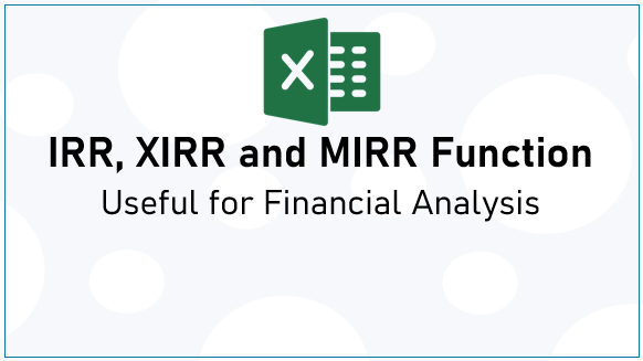 Learn Excel’s IRR, XIRR and MIRR Functions. These functions are very useful for financial analysis.